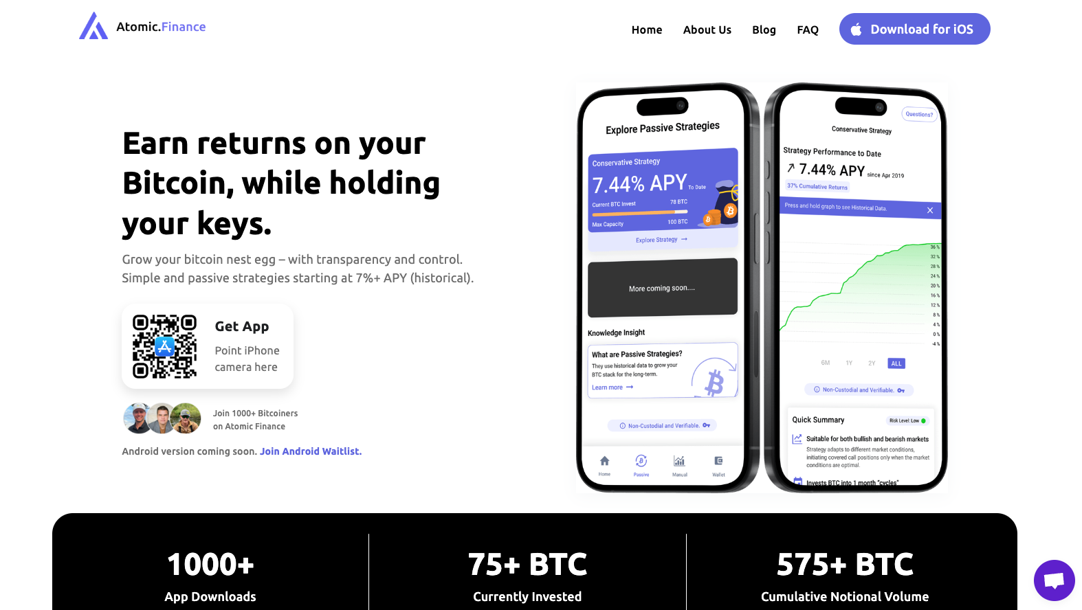 Atomic Finance 结合了比特币的基础技术和创新的合约机制,它通过比特币的脚本语言和离散对数合约(DLCs)在比特币上实现 DeFi 功能。比特币持有者能够更有效地利用他们的资产来获得收益,同时保持资产的安全性和去中心化的特点。目前 App 下载量超过 1000 次,投资额超过 75 BTC。