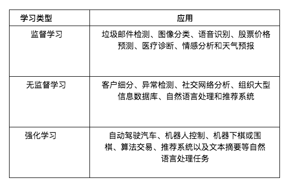 学习主要有三种类型:监督学习、无监督学习和强化学习。