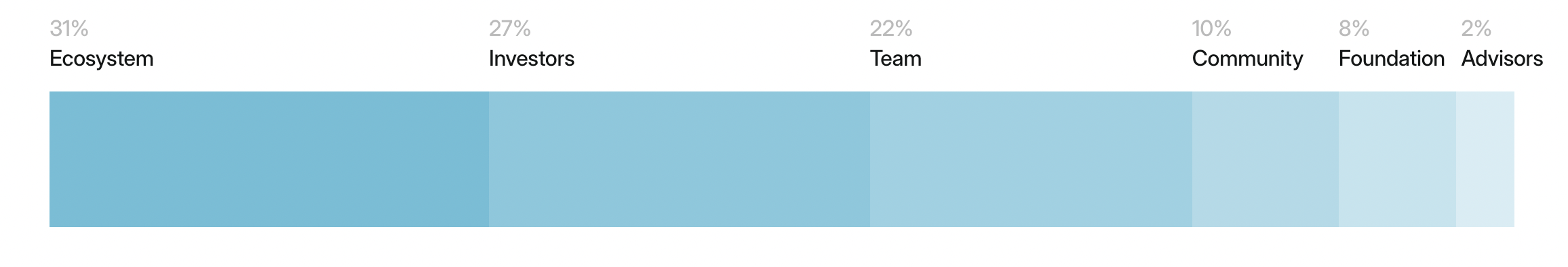 ETHGas 项目的代币 GWEI 总供应量为 100 亿枚,生态系统占 31%、投资者占 27%、团队占 22%、社区占 10%、基金会占 8%、顾问占 2%(解锁情况等细则并未公布)。