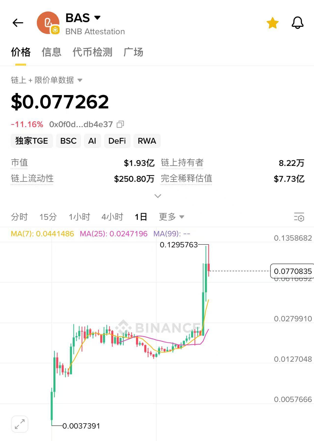 Bas 代币价格走势图