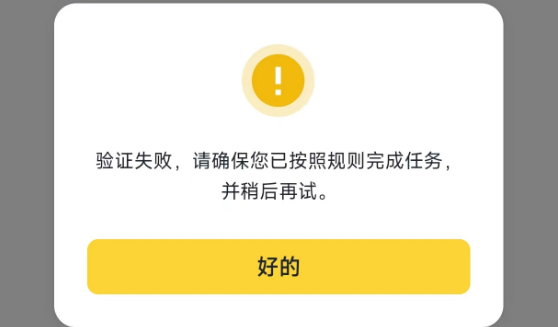 注意:根据币安 Megadrop 首期项目 BounceBit 的用户反馈出现完成任务后无法验证的问题(弹窗提示如下图),其原因是币安 Web 3 钱包不是新创建的,而是外部导入。因此,参与币安 Megadrop 须在币安 Web 3 钱包中创建新钱包参与。