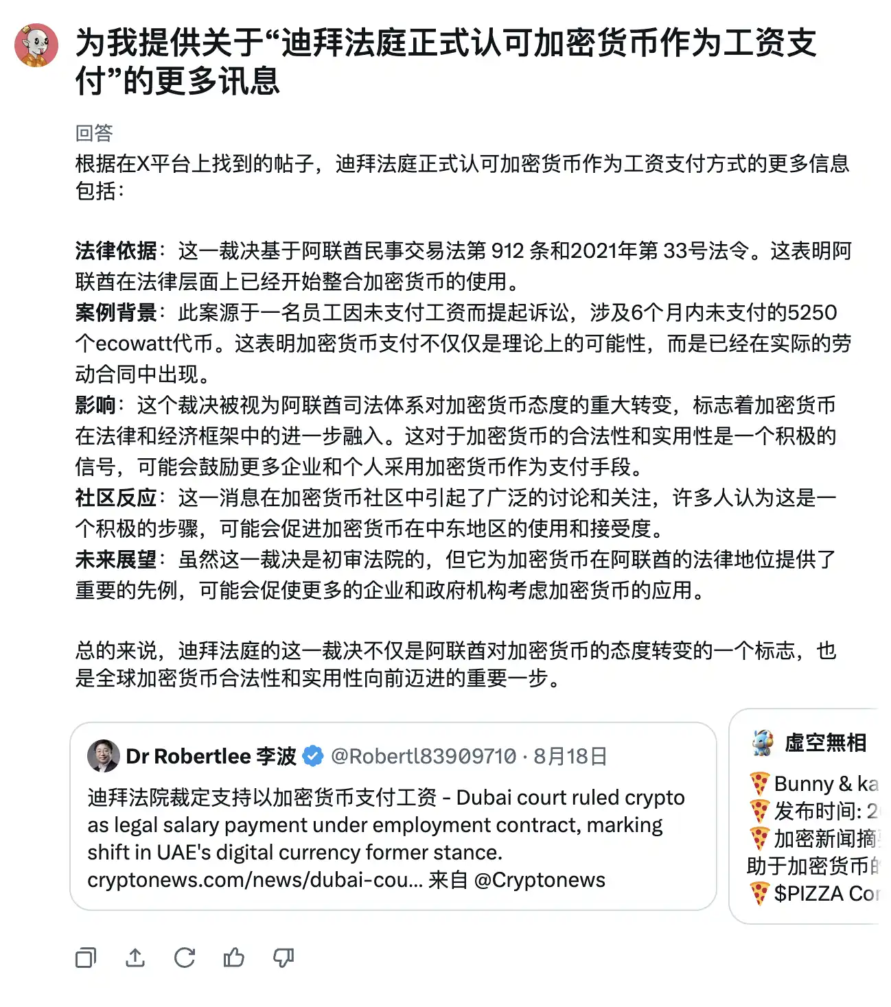 最后,还可以让它为你附上加密 KOL 对此的点评。