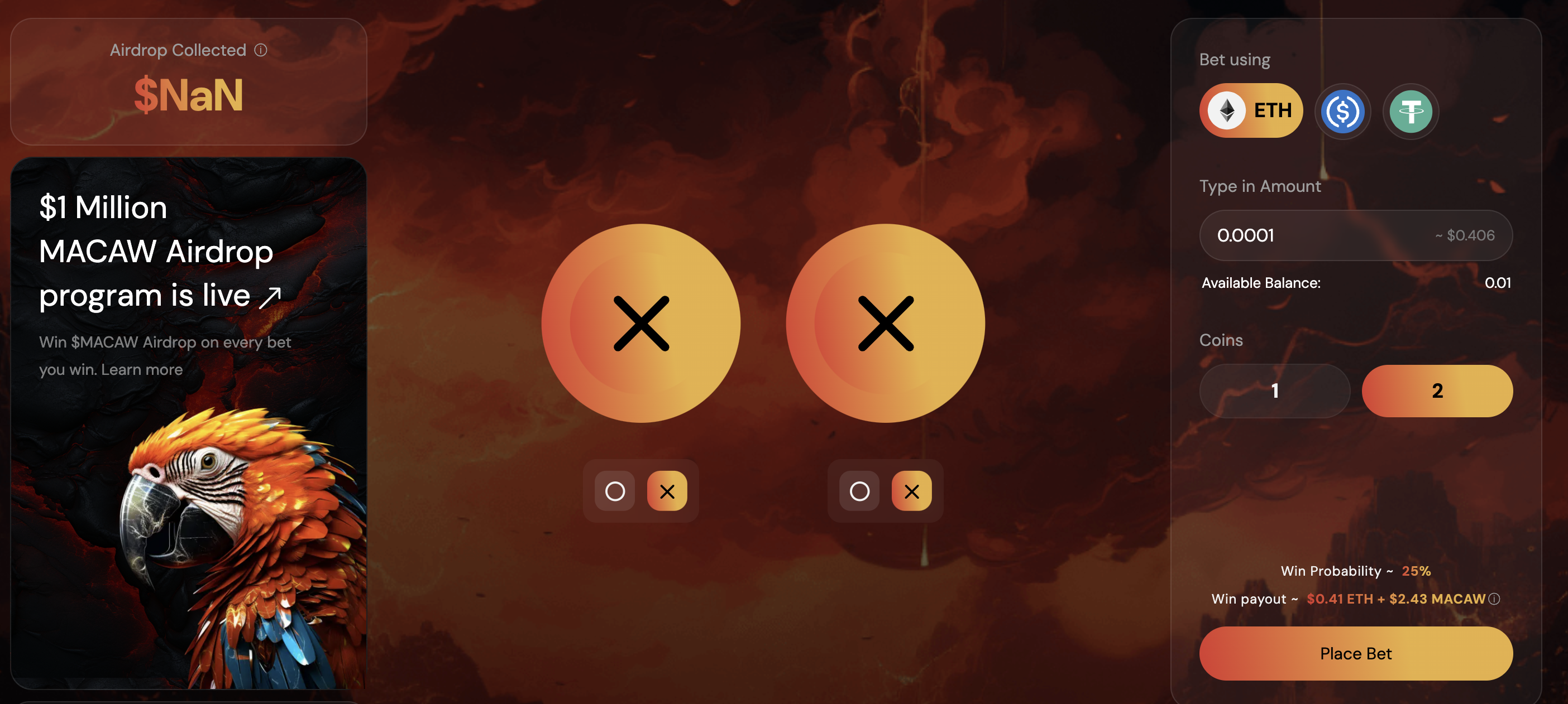 连接钱包,切换到 Linea 主网,点击「Place Bet」加注,无论是否赢得游戏胜利都可以完成交互。