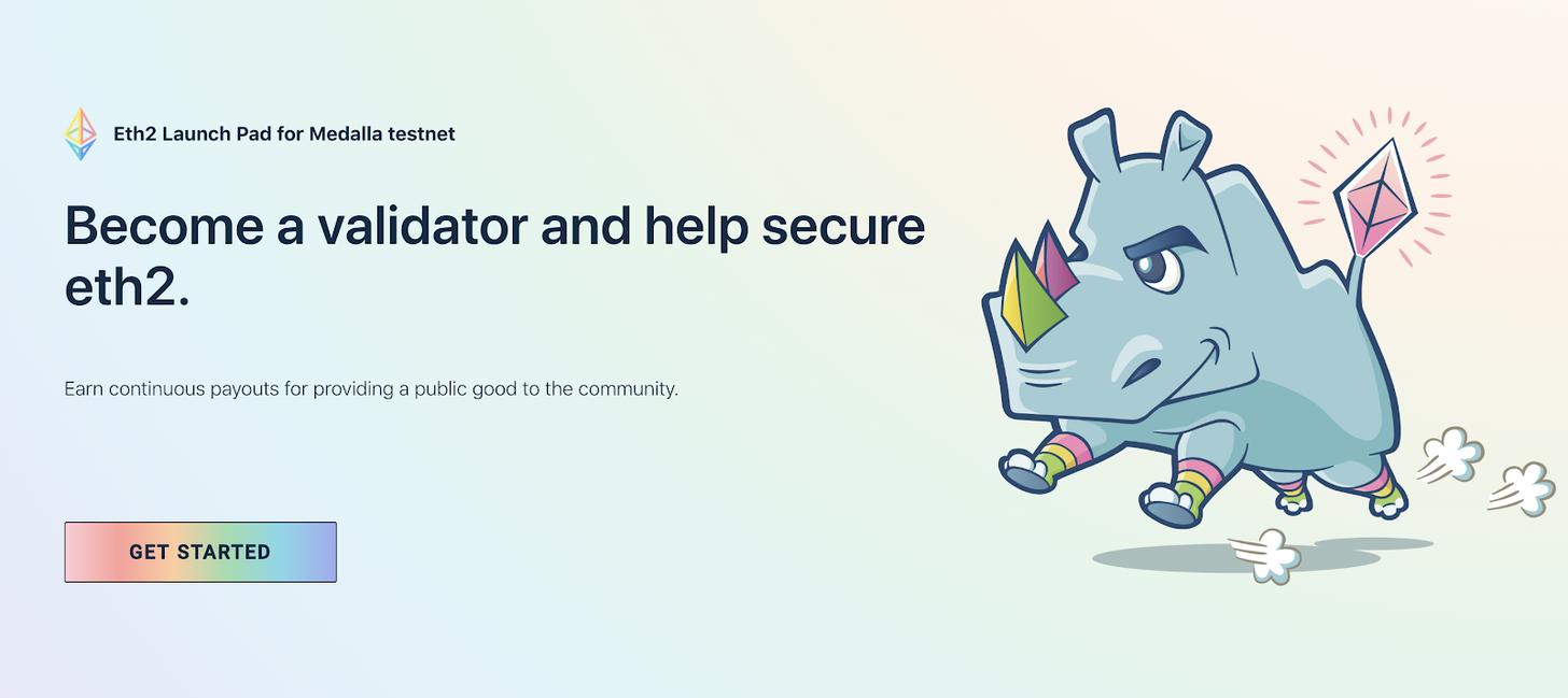 如果读者刚接触以太坊,那么加入网络的主要方式就是参与质押。Eth2的Medalla测试网需要每位验证者质押32个GöETH (除了使用Goerli测试币,其他步骤与真正的Eth2没什么不一样!)
