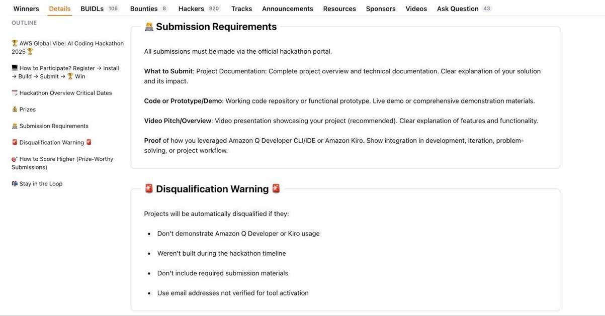 2025 年 AWS AI Vibe Coding 黑客松的规则