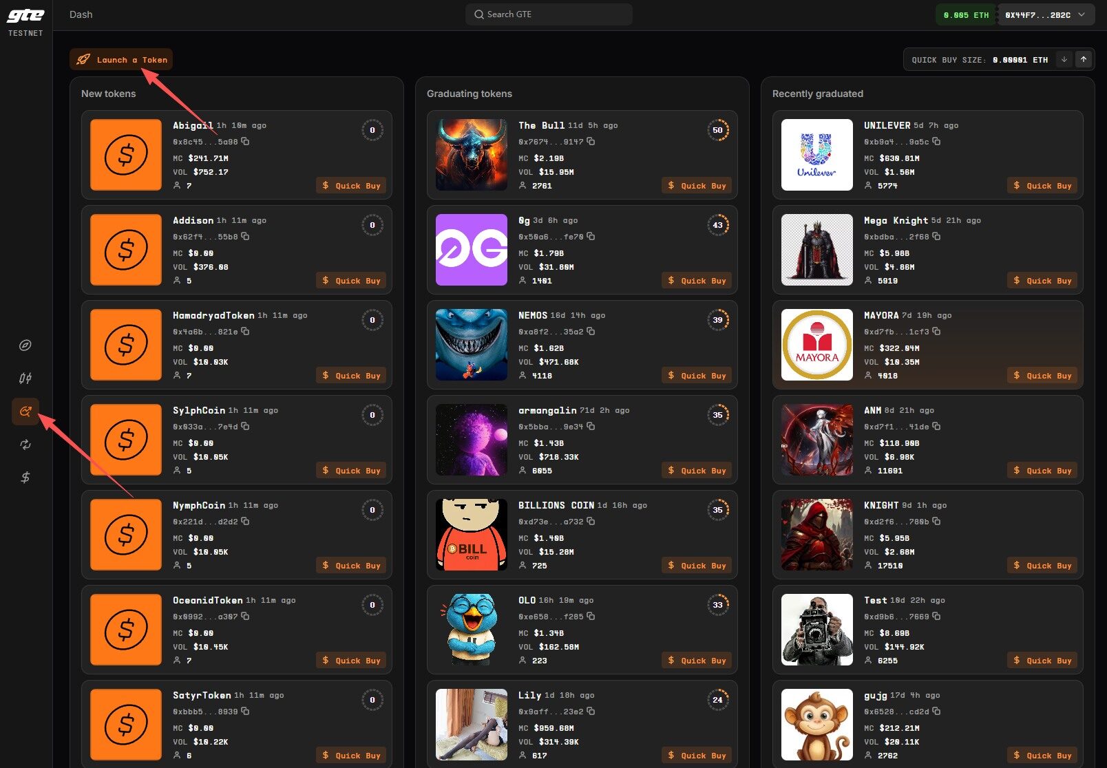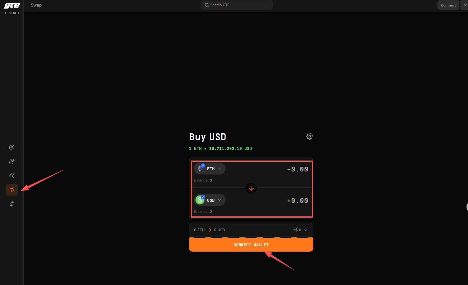 STEP 2. 进入 GTE 网站(链接:https://testnet.gte.xyz/swap),将 ETH 兑换成其他代币。