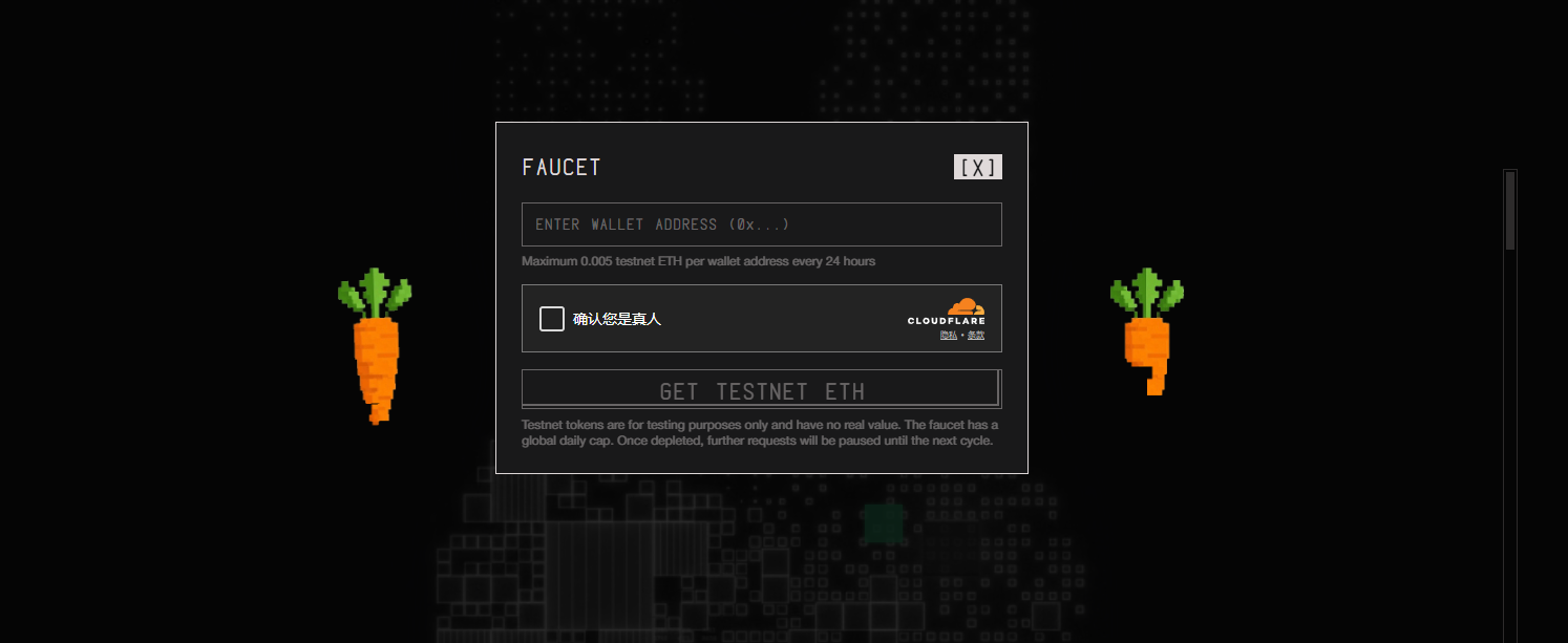 STEP 1. 领取测试币(链接:https://testnet.megaeth.com/#1)。