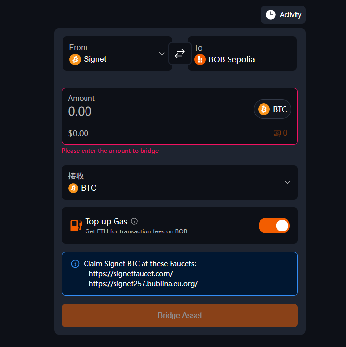 STEP 3. 完成 BTC Signet 至 BOB Sepolia 测试网跨链交互。