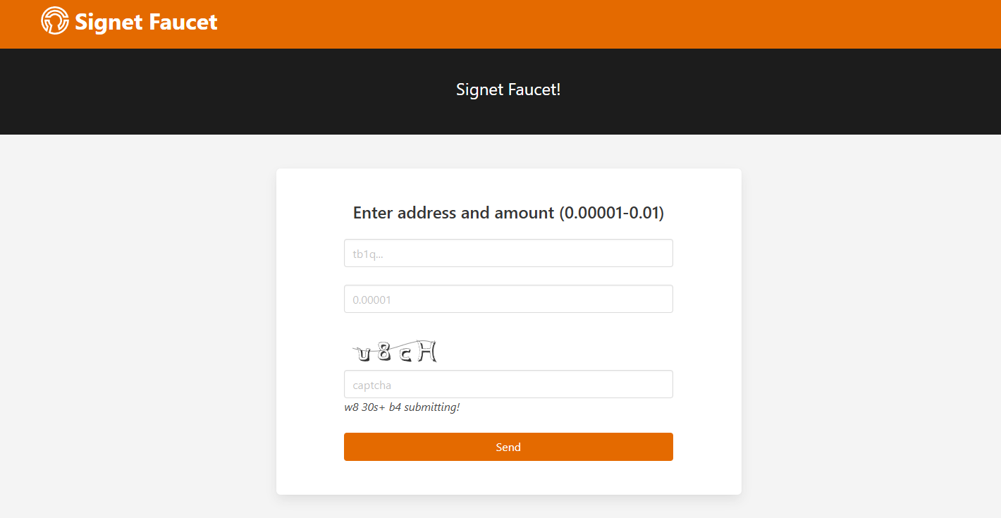 STEP 2. 领取测试币(链接:https://signetfaucet.com/ 或 https://signet257.bublina.eu.org/)。