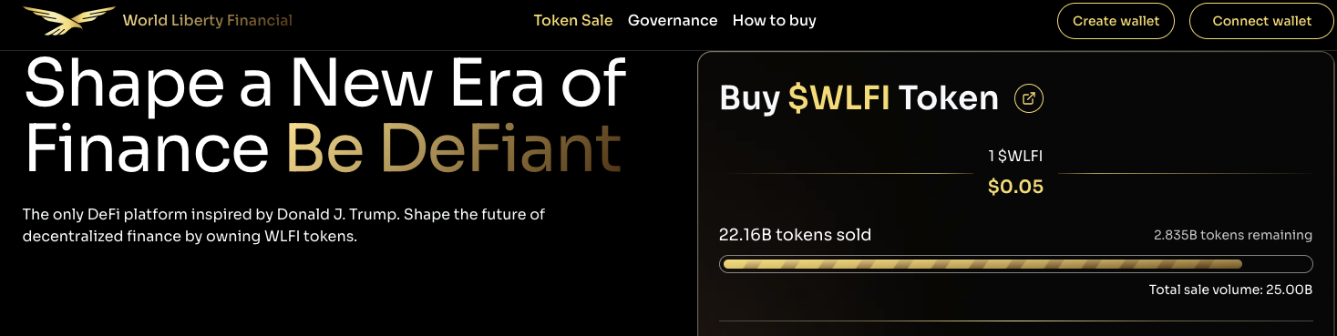 尽管初期遭遇 FUD,也未阻挡 WLFI 项目发展的脚步。1 月 20 日,WLFI 宣布已成功通过公募出售了 20% 的$WLFI 代币,即 200 亿枚,按 0.05 美元的公募价格,共赚取 10 亿美元,该公募轮从 2024 年 10 月 15 日开始至结束,历时约 3 个月。WLFI 在完成原定 20% 的代币销售目标后,由于市场需求旺盛,同时又宣布额外开启了 5% 的代币销售,截止目前,共销售出 21.6 亿枚$WLFI 代币。