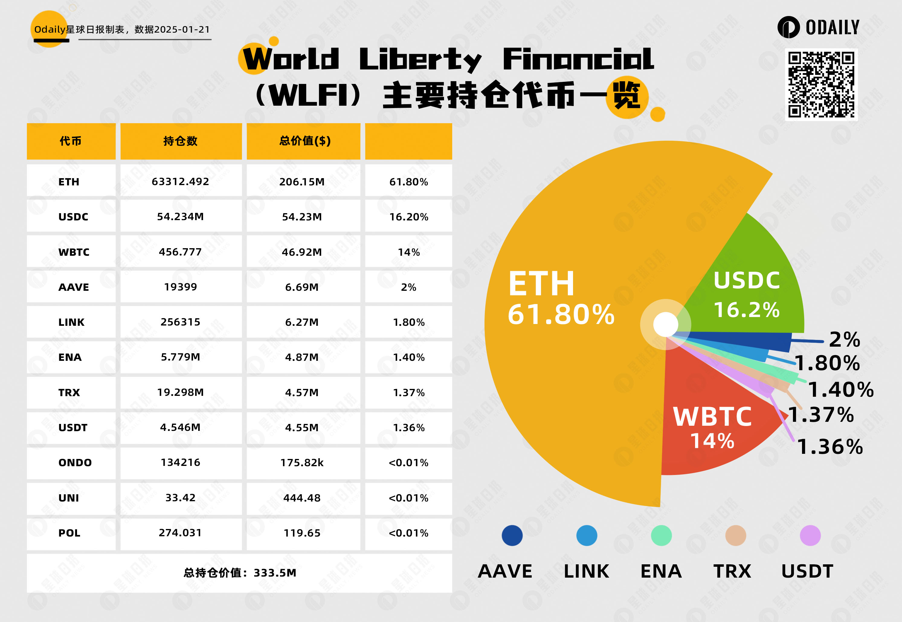 那么,WLFI 与特朗普家族究竟有何渊源,为何所买代币被戏称为“总统严选”,WLFI 当前主要持有哪些代币?如果你还对 World Liberty Financial 一知半解或想跟单“加密总统代币列表”,Odaily星球日报将在本文中进行介绍。