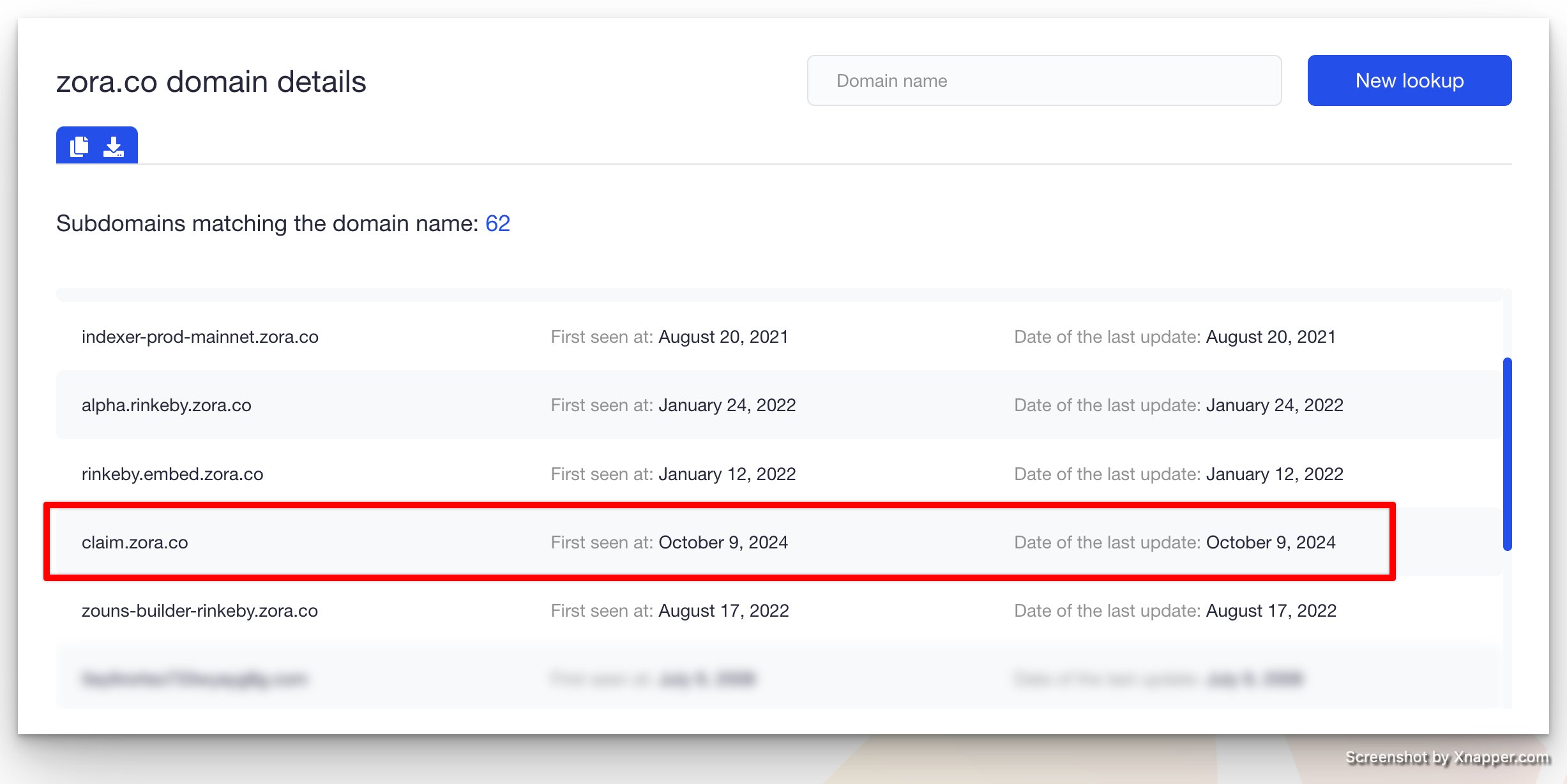 10 月 9 日,据以太坊 L2 网络 Zora Network 官方网站域名信息,查询其域名中带有“claim.zora.co”子域名,或为代币空投申领网站域名。该域名首次发现于 2024 年 10 月 9 日,上次更新日期同为 2024 年 10 月 9 日。需要注意的是,该域名用途目前仍处于猜测阶段,官方暂未更新具体信息,用户需关注保护资金安全。