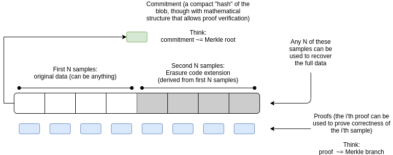 其原理是将完整的区块数据分割成若干“样本(sample)”, 网络中的节点只需要获取与自己相关的少数样本,就可以对完整区块进行验证。