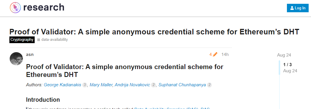 在以太坊技术论坛中,今天 George Kadianakis , Mary Maller, Andrija Novakovic , Suphanat Chunhapanya 4 人共同提出了这个方案。