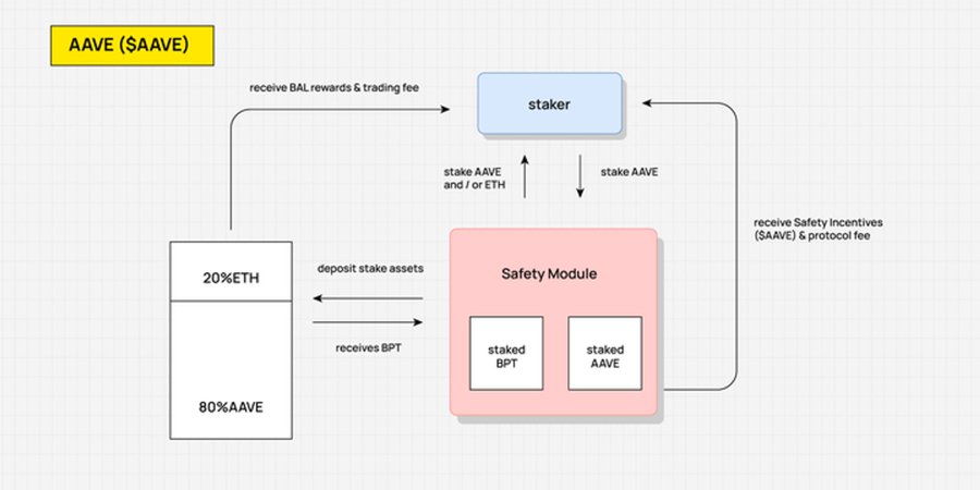 在 DeFi 借贷协议中,代币主要用于治理和抵押。在 AAVE 中,用户被激励在安全模块中抵押 $AAVE 以获得安全奖励和协议费用。