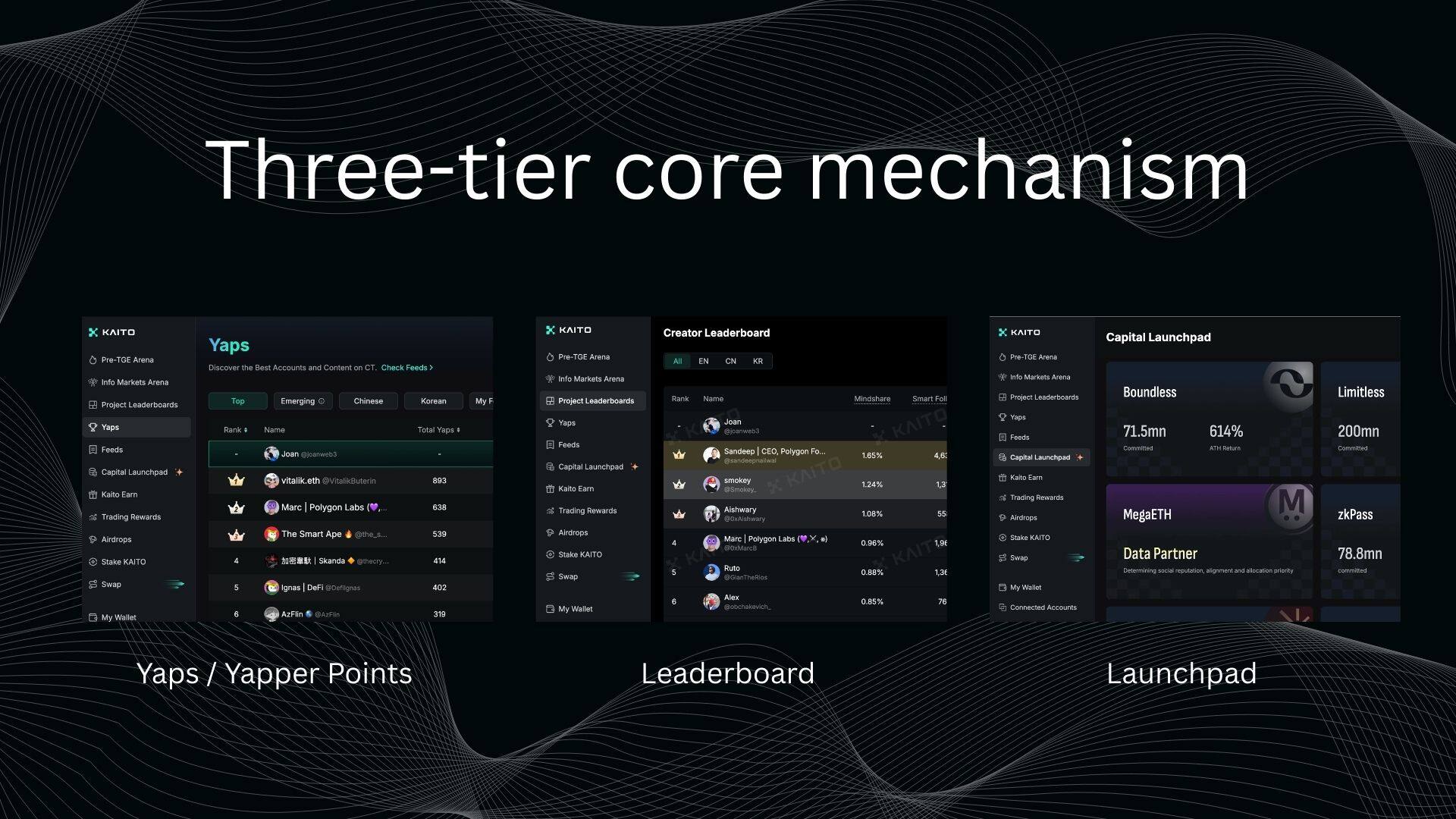 二、Kaito 的增长系统是如何运作的:三层核心机制