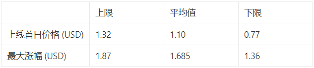 按照最近三期 IEO 数据对$ARKM 上线价格进行估算,我们可以估算出$ARKM 的价格范围如下表所示,首日范围在$ 0.77 ~$ 1.32 之间。