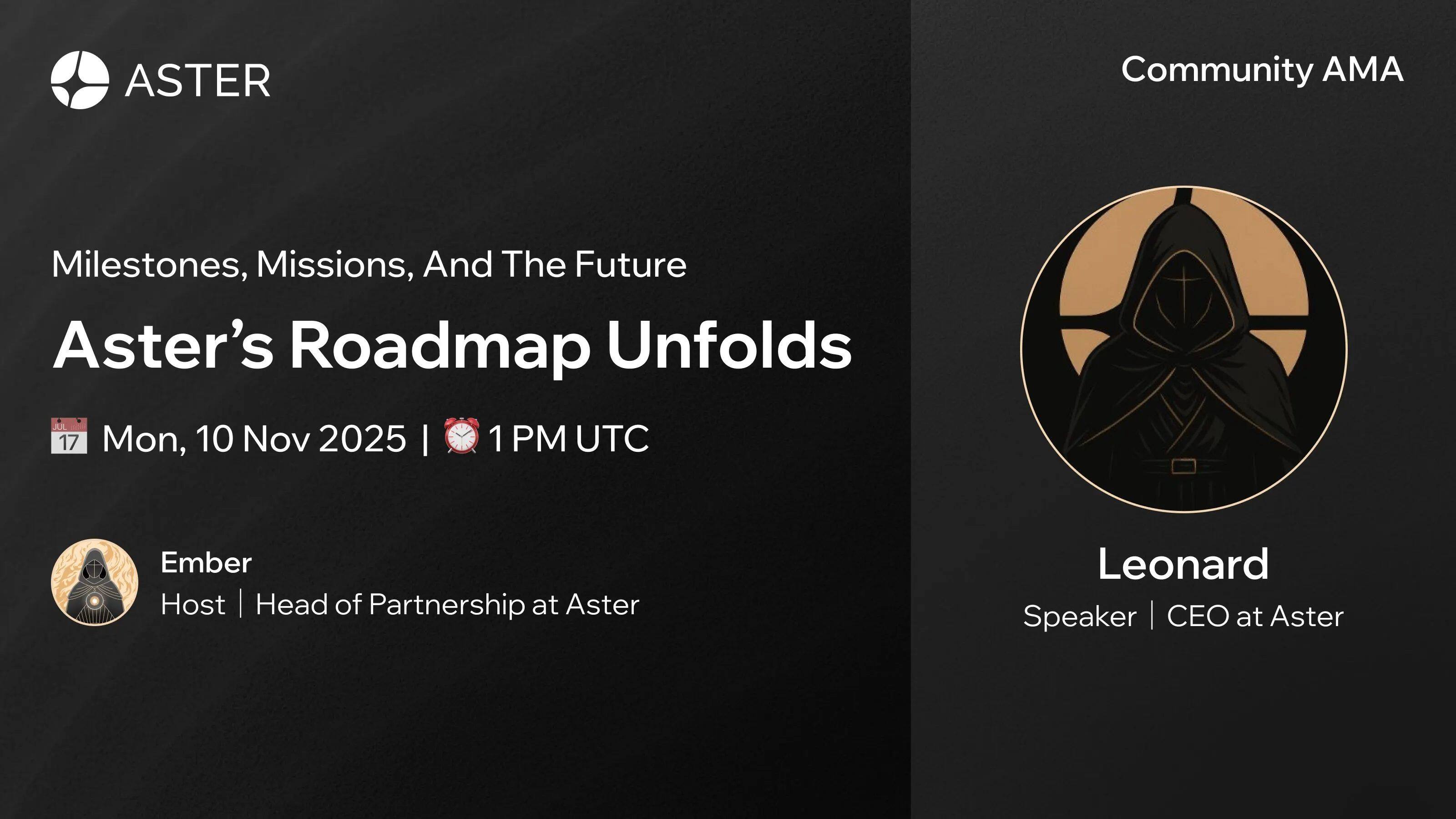 Ember:大家好,欢迎来到 Aster 的 11 月 AMA。我是 Ember,负责 Aster 的合作伙伴关系。今天我们邀请到了 Aster CEO Leonard。首先,Leonard,和大家打个招呼吧!