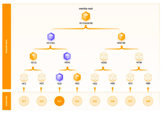 check:Verifier 通过揭露的 tx 3 和 branch(H( 4) -> H( 12) -> H( 5678))进行计算并验证承诺: