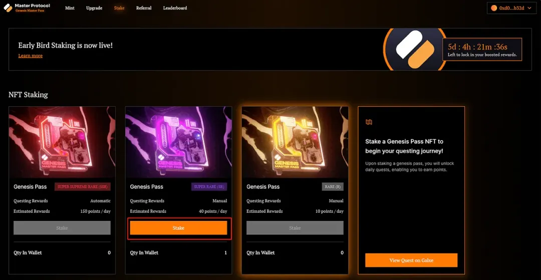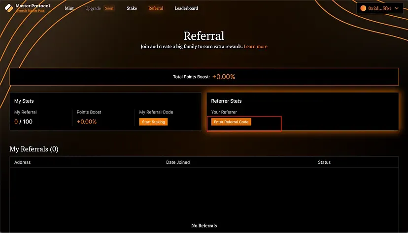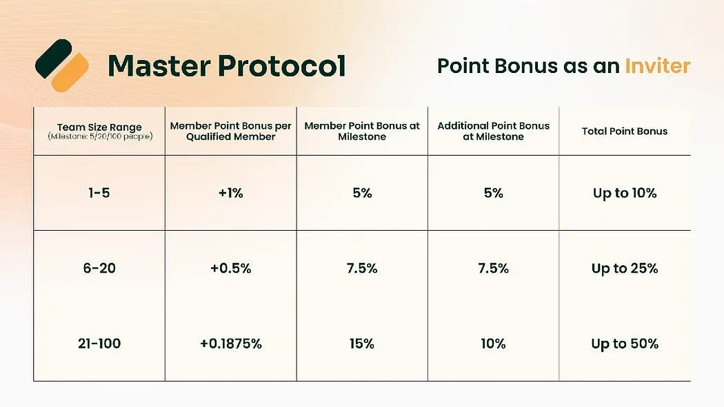 具体邀请奖励规则可以参考官方的详细说明:https://medium.com/@MasterProtocol_/unveiling-genesis-master-pass-mint-time-and-exclusive-early-bird-campaign-07bac2f64504