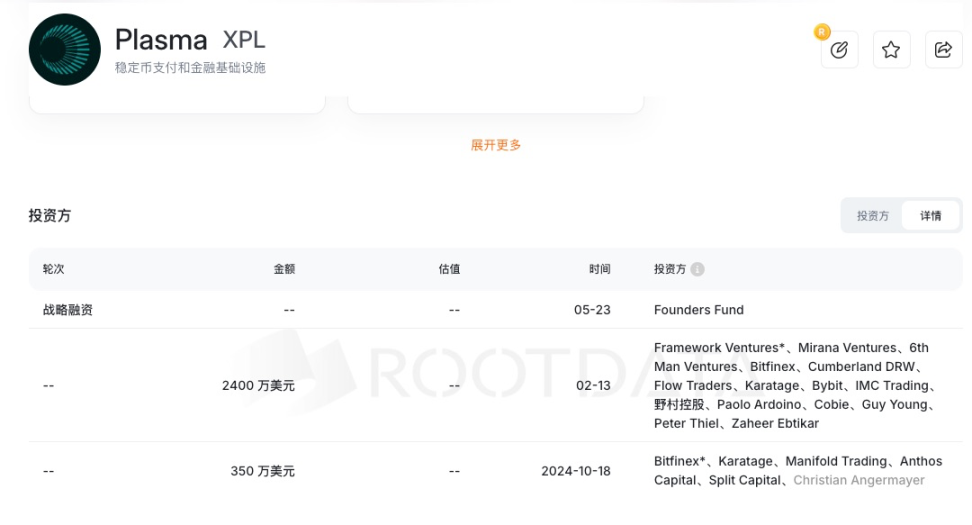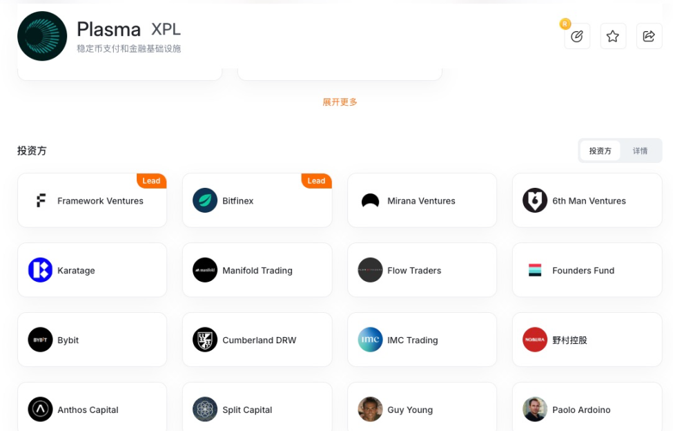 Plasma(XPL)背后聚集了强大的资方阵容,包括 Founders Fund、Framework Ventures、Bitfinex 以及 Tether 团队高管 等,既提供了资金也带来战略支持。项目自 2024 年起先后完成约 3.5 百万美元的种子轮和约 2 千万美元的 A 轮融资,并在主网上线前的公募阶段筹得超过 3.7 亿美元,用于稳定币流动性池、生态激励、技术研发和安全审计。这些资金为 Plasma 构建零费稳定币转账网络和广泛的 DeFi 生态奠定了坚实的资源基础。