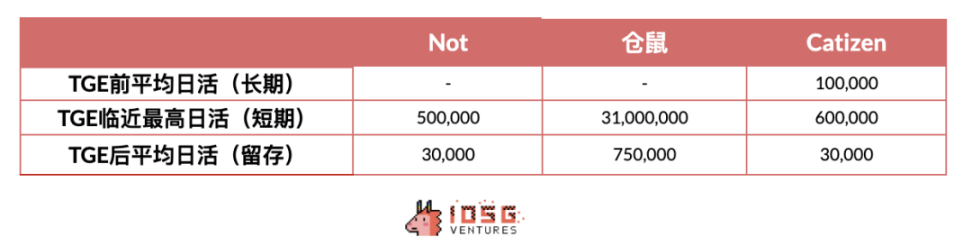 不管是 Not,Catizen 还是仓鼠以及 Dogs,都为币安等交易所带来了一大波新用户增长。可实际留存在生态内或是交易所的长线用户究竟有多少。新增的用户价值是否匹配 VC 们对其的期待和投资。
