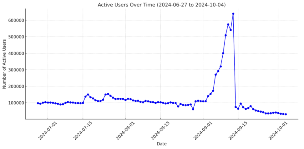 让我们来看看 Catizen,作为 Ton 生态上热度最大的小游戏之一,从发币前 64 万活跃用户降至 7 万只需要一天,后续的用户留存数据更显低迷。从长线用户来看,哪怕游戏内容无任何改变,在空投预期不复存在后,高达 90% 及以上的用户立即抽身,最终沉淀留存的仅 3 万人左右。这样的用户留存比是否达到了投资人的预期以及实现了拉新的目的?哪怕获取了空投的用户转向交易所带来一波即时的用户增长,在抛售空投变现后,这些用户是否会像抛弃 Catizen 一样。当产品本身变身变成 viral campaign,以拉新为目的的短期项目,哪怕短期为生态带来了一波增量,但真正沉淀下来的用户,能否满足生态和交易所预期,对得起这笔投资呢?我们仍然存疑。