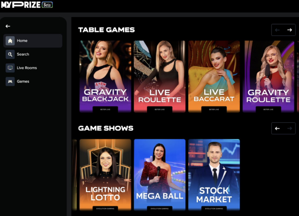 今年 2 月 12 日由 Polychain Capital 领投,Hack VC,Folius Ventures 等跟投的 Monkey Tilt 为大家提供了一个有大基金背书的集合赌球网站和线上赌场。Myprize,一个于 3 月 24 日宣布 Dragonfly Capital 领投和 a16z 等大 VC 参投了 $ 13 Million 总额的线上赌场则更为大胆,主页玩法公然出现性感荷官在线发牌和直播选项。
