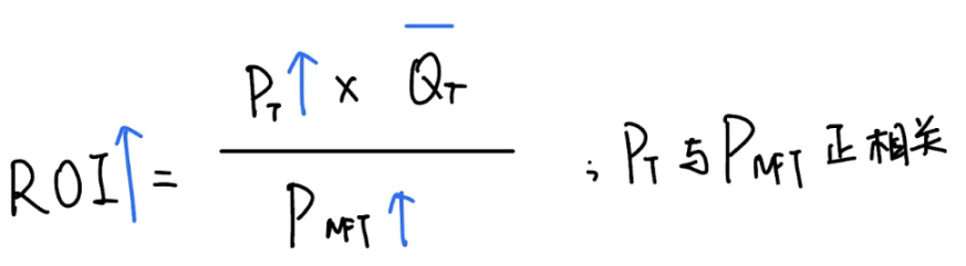 当 ROI 中分母变小时,ROI 自然也会变大,那么即 NFT 作为矿机的获取成本变低。如果是以项目代币交易的 NFT 价格变低,要么是对于该 NFT 需求变小供给变多,要么是该代币作为 Medium of exchange 和 standard of measure 的价格下降,从外部引起的 NFT 价格下降。