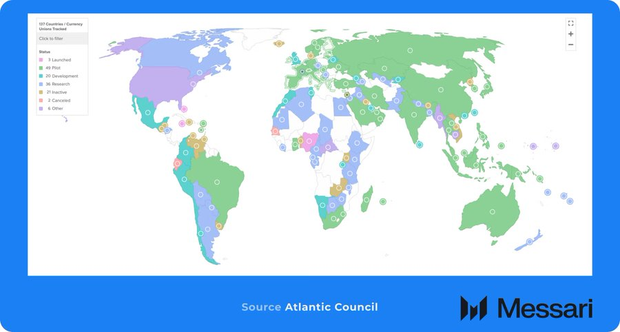 隐私需求的紧迫性,在各国央行数字货币(CBDC)陆续登场的背景下被进一步放大。目前,全球已有约一半的国家正在研究或已经推出 CBDC。
