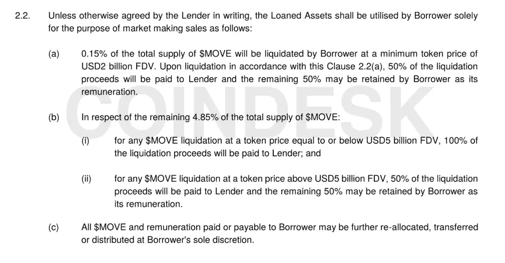 这份协议的结构与 11 月 27 日的合同类似,明确允许做市商在 MOVE 代币价格达到特定目标时进行清算——这是旧版协议中的核心条款之一,也正是像扎基·马尼安(Manian)这样的行业专家特别警惕的关键问题。