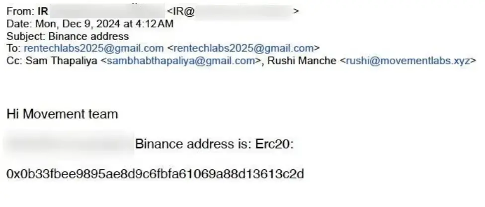 CoinDesk 审阅的通信资料显示,Thapaliya 在 Web3Port 发给“Movement 团队”的邮件中被抄送,同时也出现在其他与做市安排相关的往来邮件中,与 Rentech 和 Manche 并列。