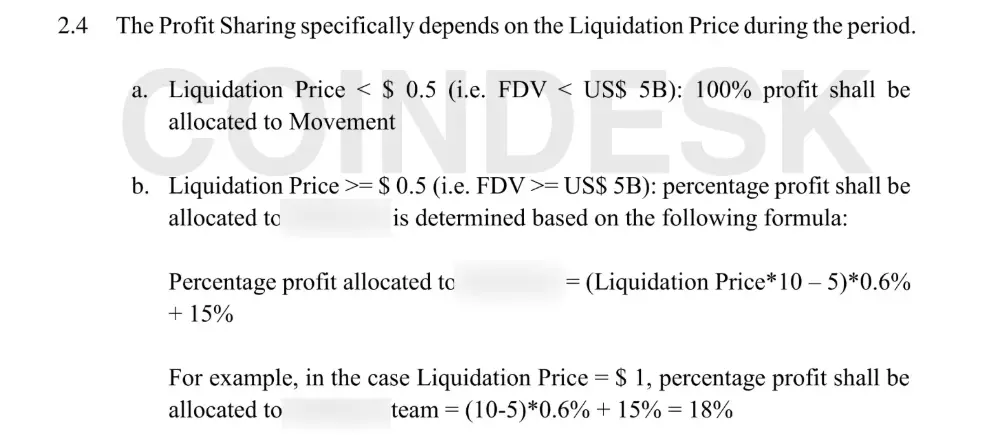 合同中一项极具争议的条款,是允许 Rentech 在 MOVE 代币“完全稀释估值”超过 50 亿美元时立即清算其持有代币,并与基金会按 50: 50 比例分享利润。