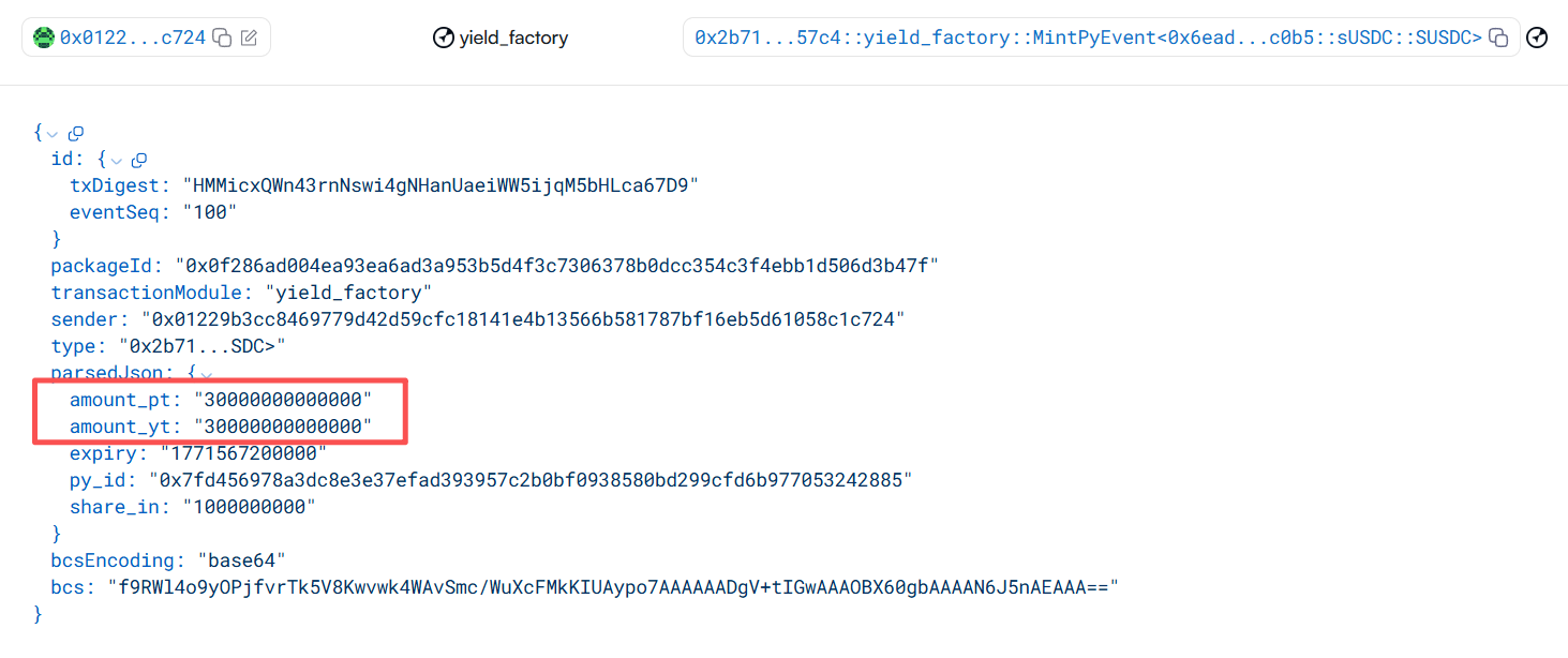 5. 接着攻击者利用被异常放大的指数,在调用 yield_factory.mint_py 时,以畸高的折扣利率铸造 PT 与 YT,从而套取大量 PT。