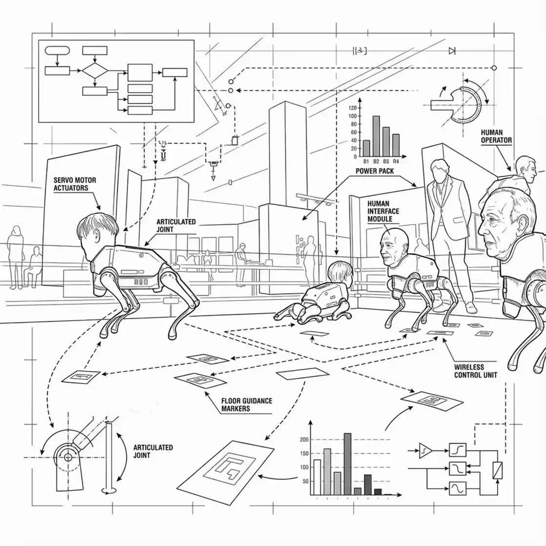 而这些机器狗所扮演的名人们也不是随意挑选的,之所以选择上述名人,是因为他们对人类看待世界的方式产生了影响,无论是通过算法、艺术或是政治。我们作为人类,通过这些视角来观察这个世界,而这些机器狗也是如此。在巴塞尔艺术展上,这些机器狗和人类相互观察,而观察的一个又一个瞬间,成为了这些机器狗创作的艺术作品,这些艺术作品也像这些机器狗的自传。