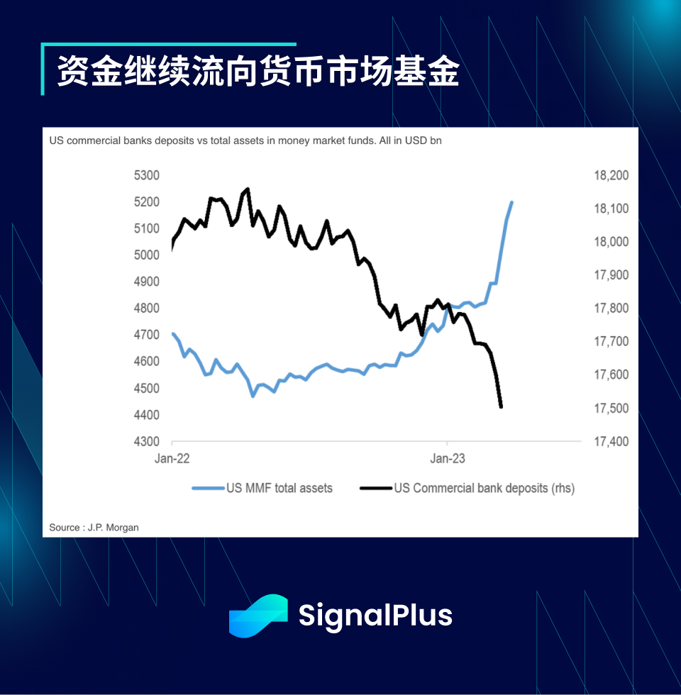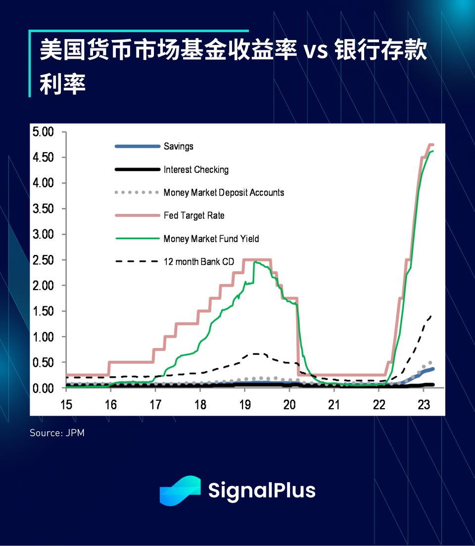 由于银行业未能尽快提高存款利率,存款继续流向货币市场基金,银行的存款利率与货币市场利率仍有较大的差距,比起全面提高存款利率(也就是存款借贷成本),银行选择通过美联储的 BTFP 计划(成本为 OIS+ 10 bp)来为存款缺口筹集资金,显然他们认为这对他们的 NIM(净利润率)的打击会比较小。