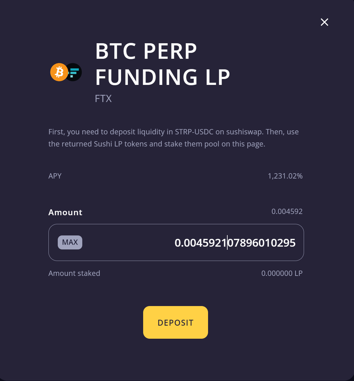输入您想要质押的 Sushi LP (SLP) 代币数量