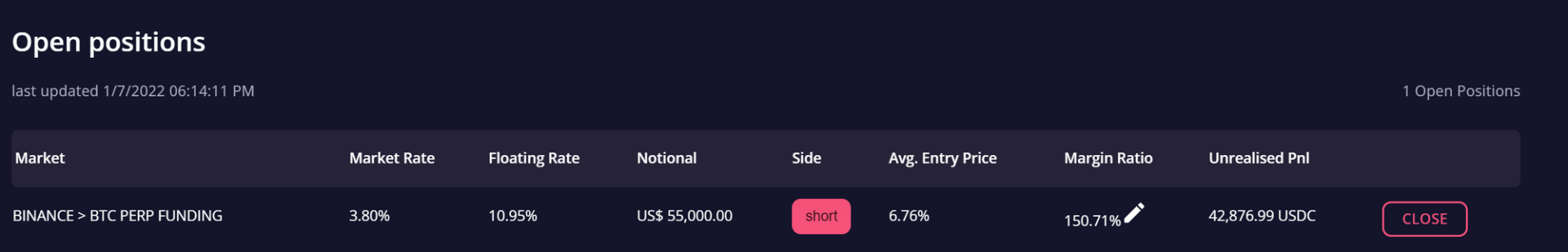 Margin ratio: 当前仓位保证金比例(低于3.5%会自动触发平仓)