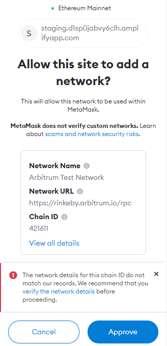 跟随Metamask 的提示切换到 arbitrum testnet 网络