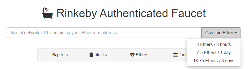 a. 前往 https://faucet.rinkeby.io/ 并按照说明接收 Rinkeby 测试网的ETH
