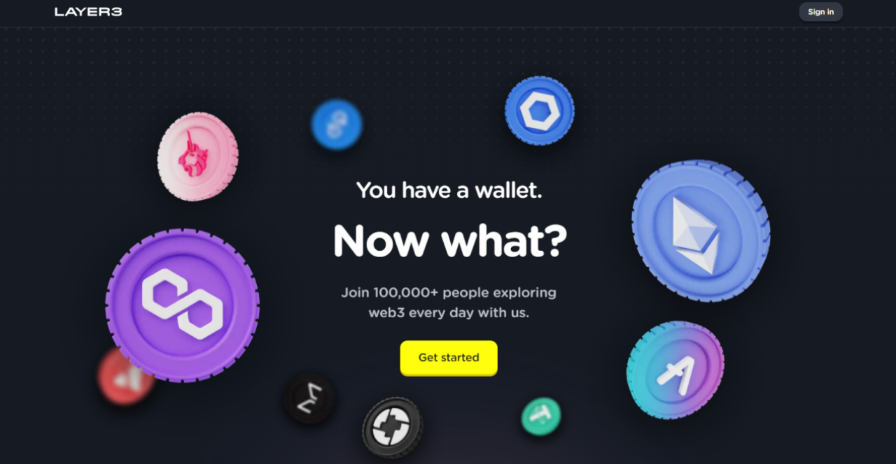 Layer 3 设计了一套“New to Web 3 ”系列任务,由浅入深地引导用户完成 Layer 2 ,DAO,DeFi,NFT 等领域的链上交互,完成后可获得 NFT 和经验值奖励。完成任务获得的 NFT 也可出售,但普遍价格不高。同时,也提供了特定项目任务,主要操作为链上交易,质押,添加流动性等,但不同于 Galxe,这些任务难度较低一些,且大多没有最低交易额要求,进行价值 1 U 的交互也可完成任务,并且也提供了任务指导,因此,对不想花费太多资金的 Web 3 初学者比较友好。项目方主要是为了获得客户,也会与各类交互平台合作。项目方需要向平台方支付一定费用,并向用户提供一定激励,可能是空投也可能是其他激励,所以平台的商业模式是 to B+to C 结合模式。可归于教育类项目。