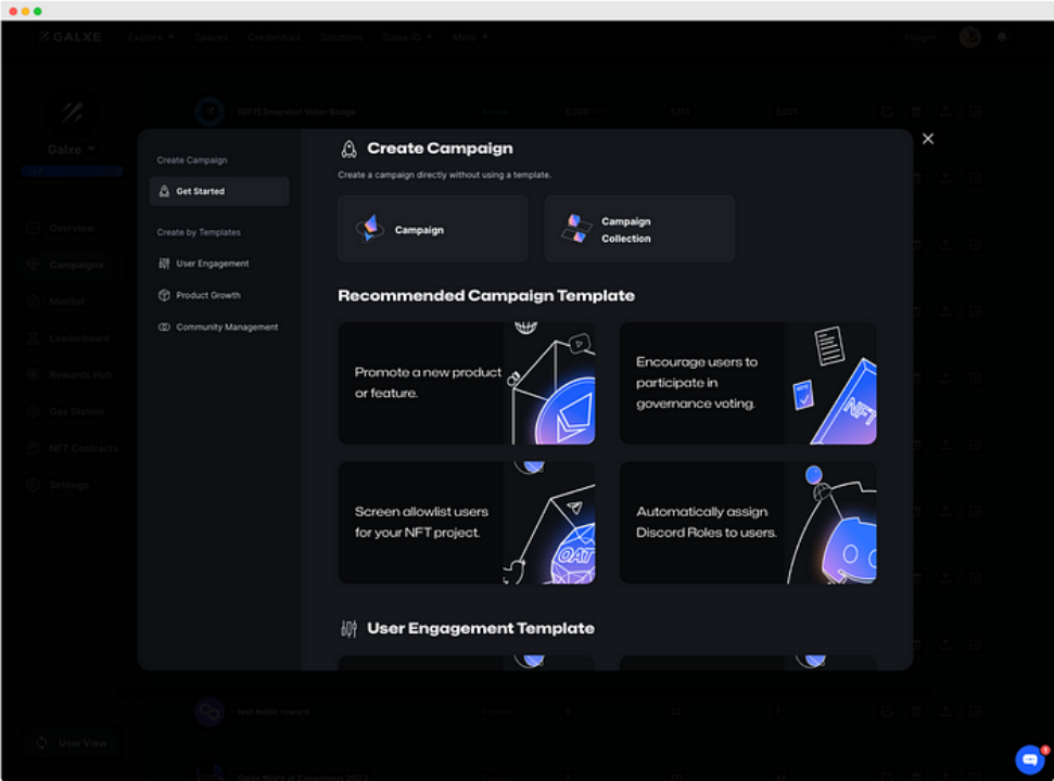 Galxe,原名 Project Galaxy,是目前最大的 Web 3 任务平台。截至 2023 年 6 月 24 日,已与超过 2700 个项目方/社区合作,推出超过 10000 个任务,拥有超过 1100 万 Galxe ID 的用户。Galxe 允许项目方在平台上发行 NFT,满足条件的用户可获得 Mint 资格,项目方还可以通过 平台的数据凭证提供定制化服务。用户可以在平台上看到各个项目发布的任务,并能够从中寻找潜在空投、参与社区活动、发现新项目。