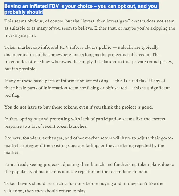 确实,人们已经选择退出:这个周期我们已经看到「CEX 代币」的衰落,因为零售参与者选择不购买这些代币;虽然个人可能没有能力在系统层面上改变这个系统性问题,但好消息是金融市场相当高效——人们想赚钱,当现有机制不赚钱时,他们就不投资,从而使整个过程无利可图,从而迫使机制改变。