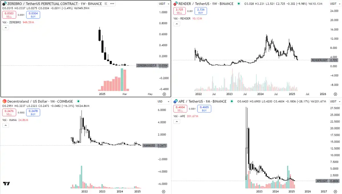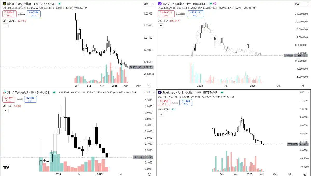 毫不奇怪,它们中的大多数图表看起来像这样——这使得以太坊的图表相比之下看起来还不错: