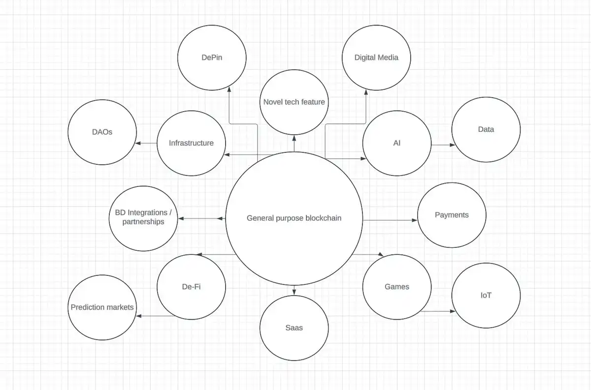 但这需要巨大的努力,最终导致碎片化而不是渗透,因为一个试图做所有事情的产品通常无法做好任何事情。这是一项花费太多金钱和时间的努力——坦率地说,许多区块链甚至难以回答一个简单的问题:「我们为什么要选择你们,而不是第 60 号区块链?」