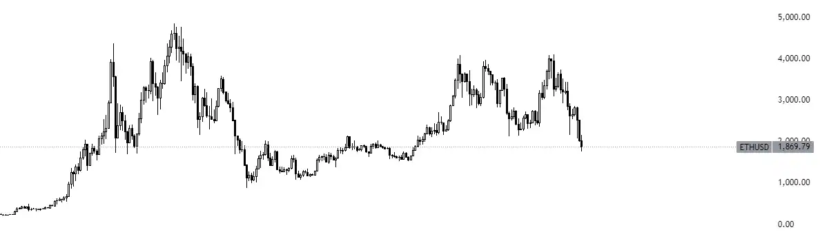 然而,比特币之后的第二大数字资产的图表看起来像这样: