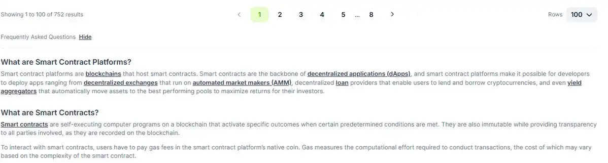 今天,距离 2021 年已经四年了,我们仍然面临着那波浪潮的后果——在 Coingecko 上有 752 个智能合约平台推出了代币,可能还有更多没有推出的。