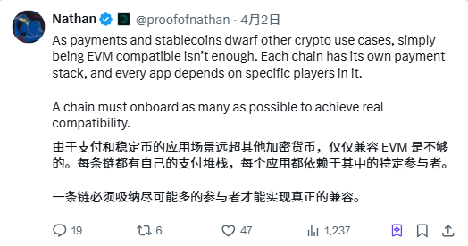 @PlasmaFDN 作为一个专为稳定币支付设计的区块链,处于有利地位,但我预计几乎所有区块链最终都会转向稳定币和支付领域。要做到这一点,它们必须重新思考自己的支付体系,因为仅仅兼容 EVM(以太坊虚拟机)已经不够了。