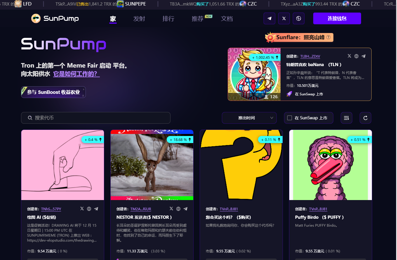 SunPump是首个专门用于公平发行和交易 meme 币的平台。SunPump 为创作者提供了一种便捷、低成本的方式,让他们可以在安全且用户友好的环境中发行自己的 meme 币。这个创新平台将提升用户参与度并促进更自主的交易体验。