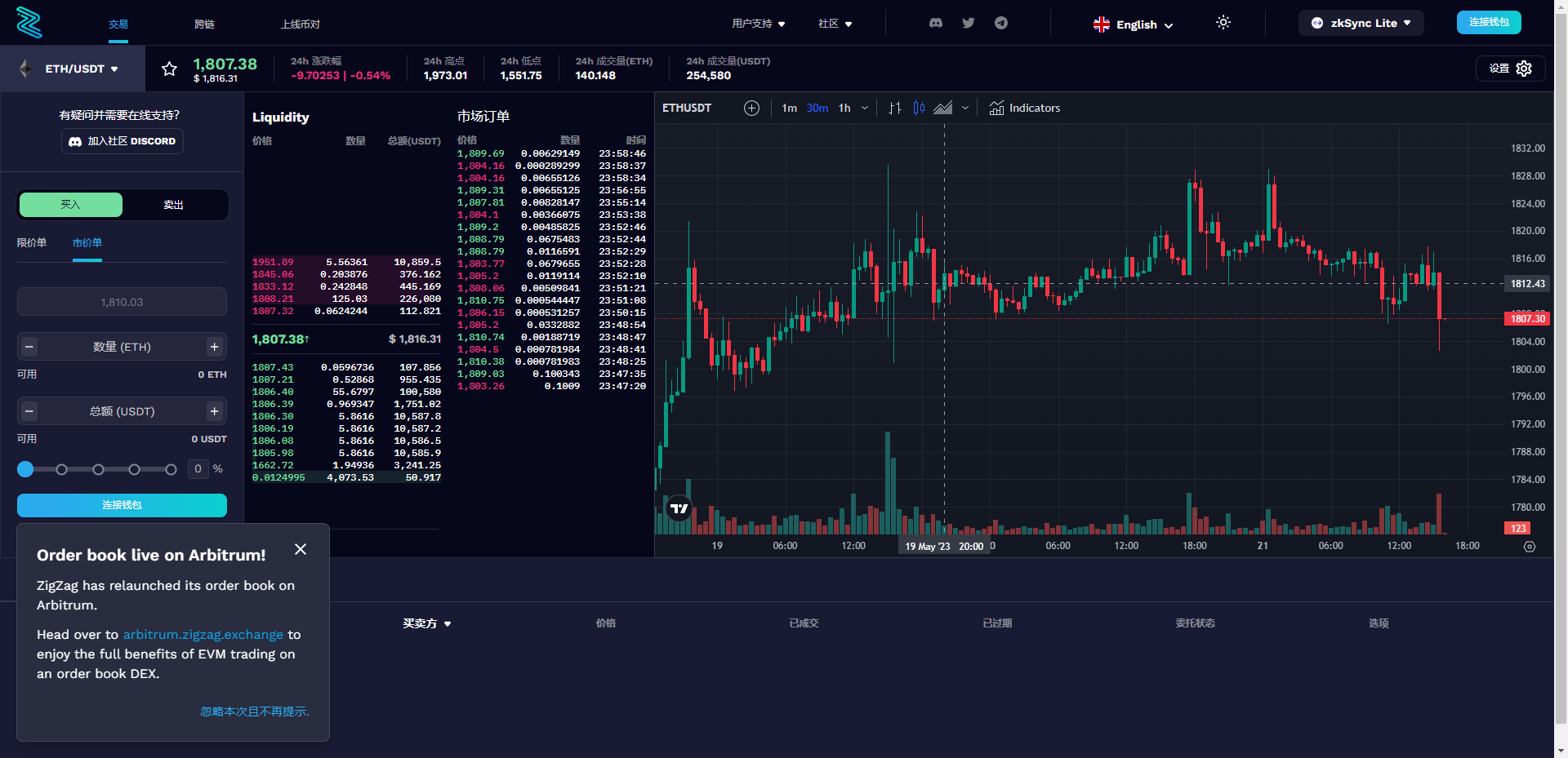 总之,ZigZag项目在zkSync Lite上运营去中心化交易所,利用其原子交换功能和做市商机器人为用户提供资产交易。ZigZag不收取交易或桥接的协议费用,只有支付zkSync网络费用的交换费用。ZigZag正在不断提高交易性能和用户体验,降低费用成本。我会持续关注ZigZag在zkSync以及其他Layer 2网络上的进展与发展。